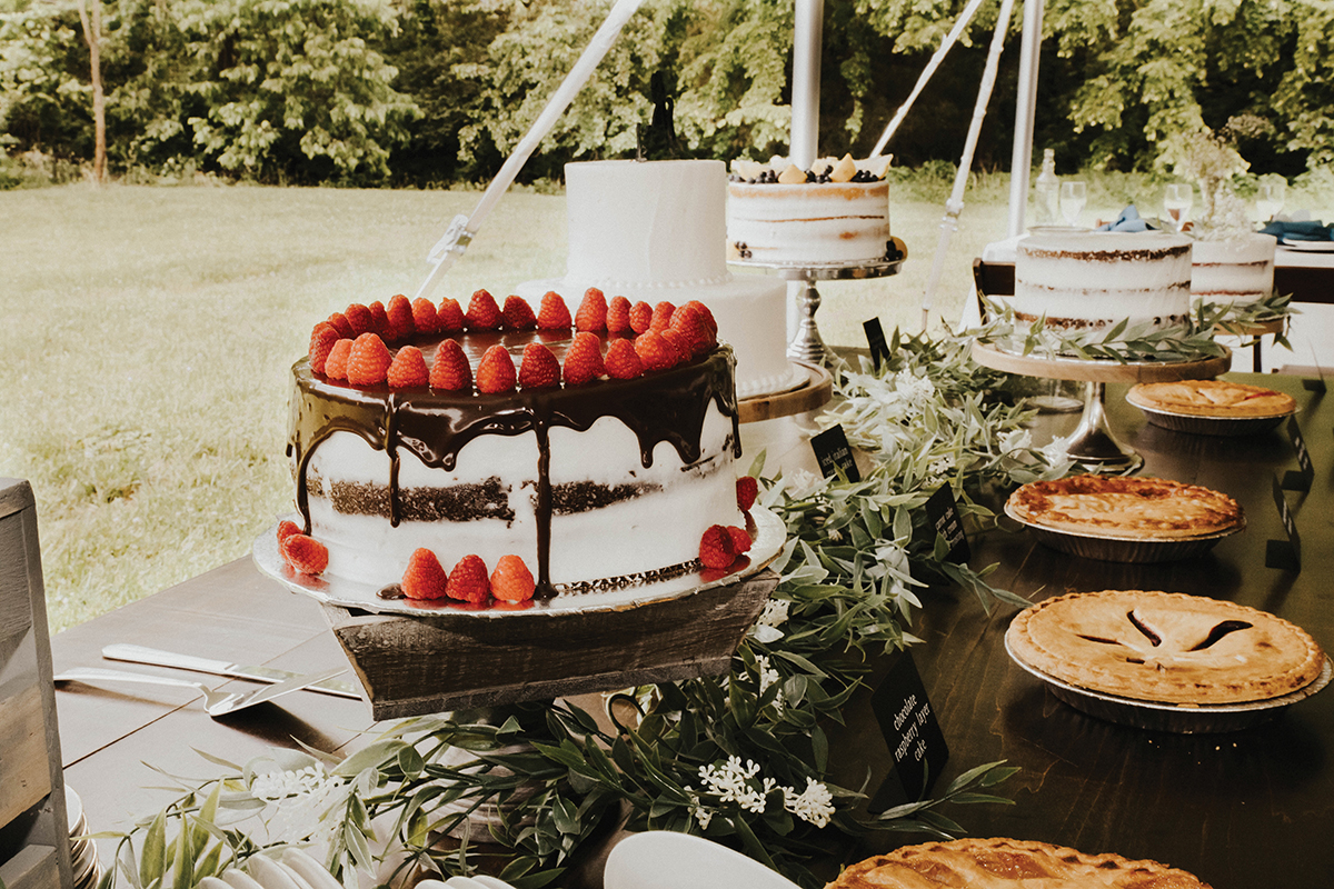 Best Money Saving Tip: We purchased a lot of things secondhand off of FB marketplace. All of the cake plates were patterned china that we found at thrift stores.