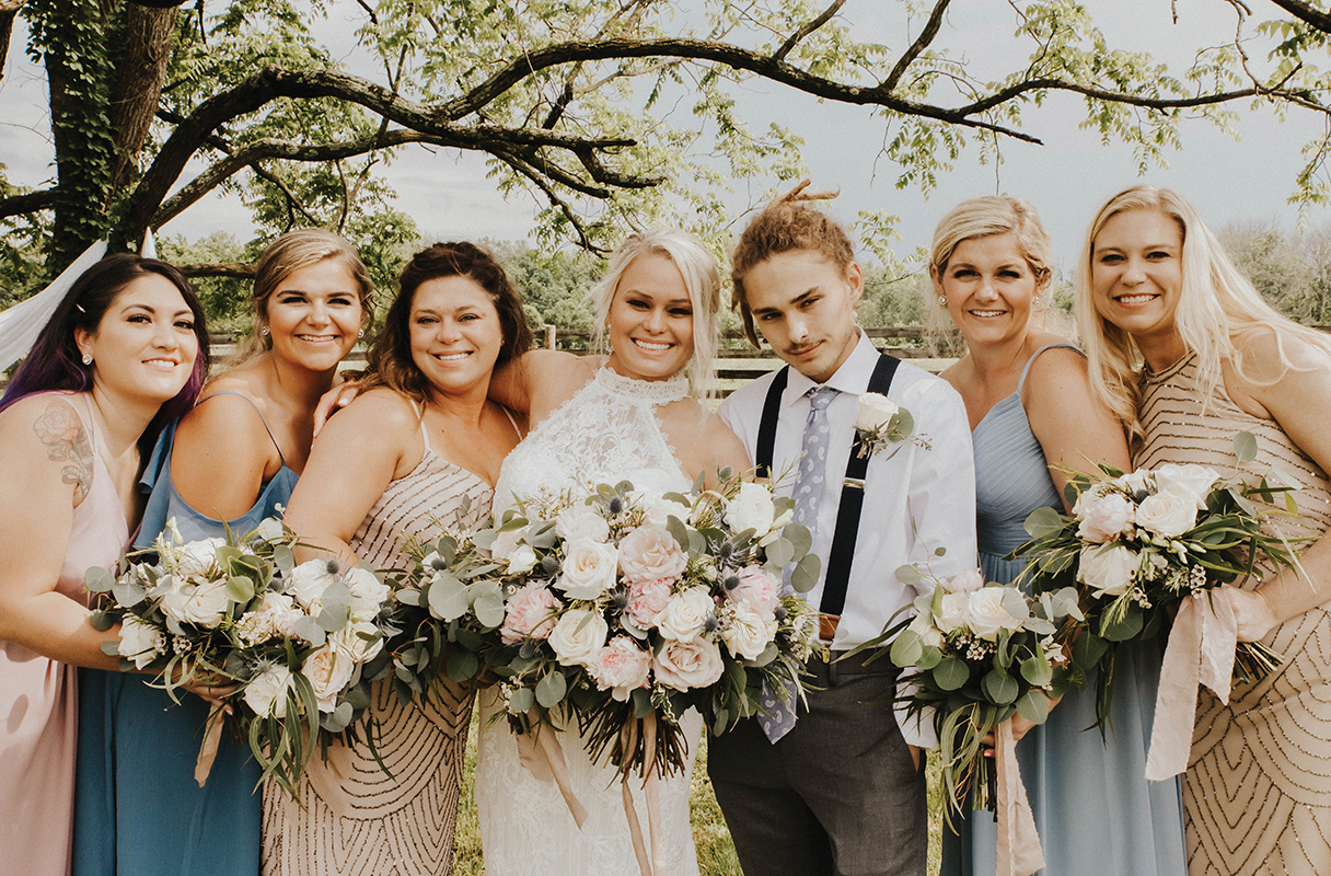 What I Loved Most: Using fresh florals instead of silk flowers. The lovely aroma of eucalyptus, white roses, blush garden roses, pink peonies, white lisianthus, and thistle was a fragrance I will always remember on my wedding day. Having a variety of fresh flowers in our bridal bouquets and boutonnieres also tied the various colors of the bridesmaid’s dresses together nicely. The mothers also wore a corsage with white spray roses, greenery, and wax flowers on a pearl bracelet.