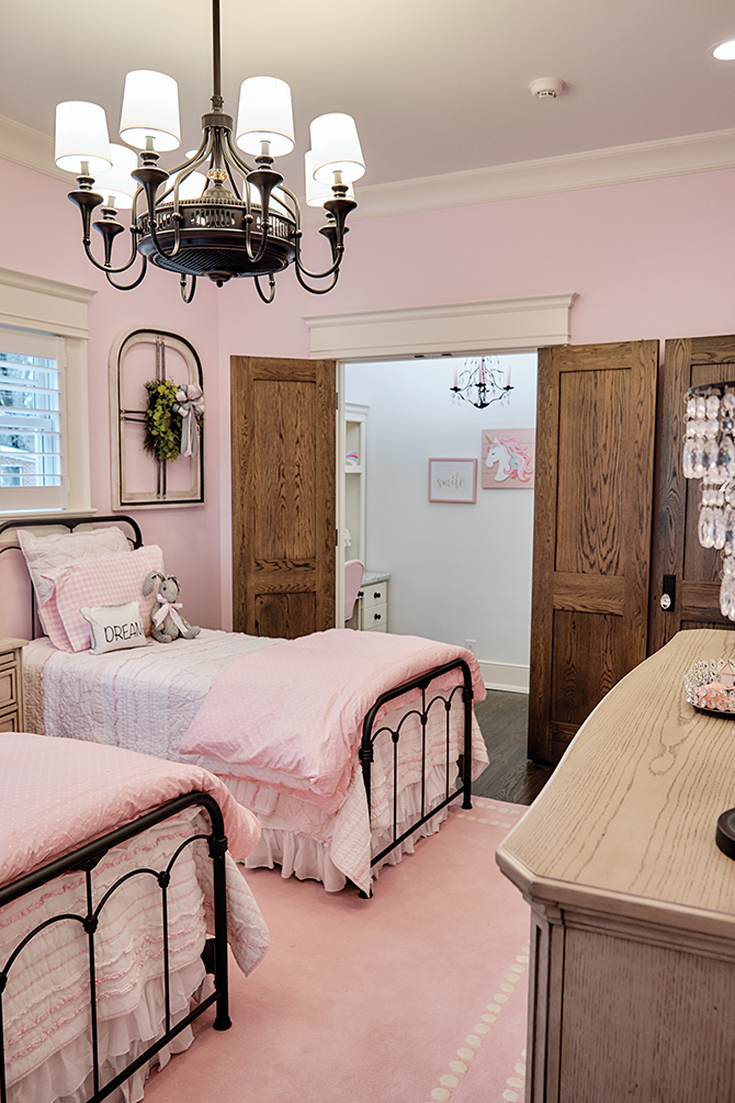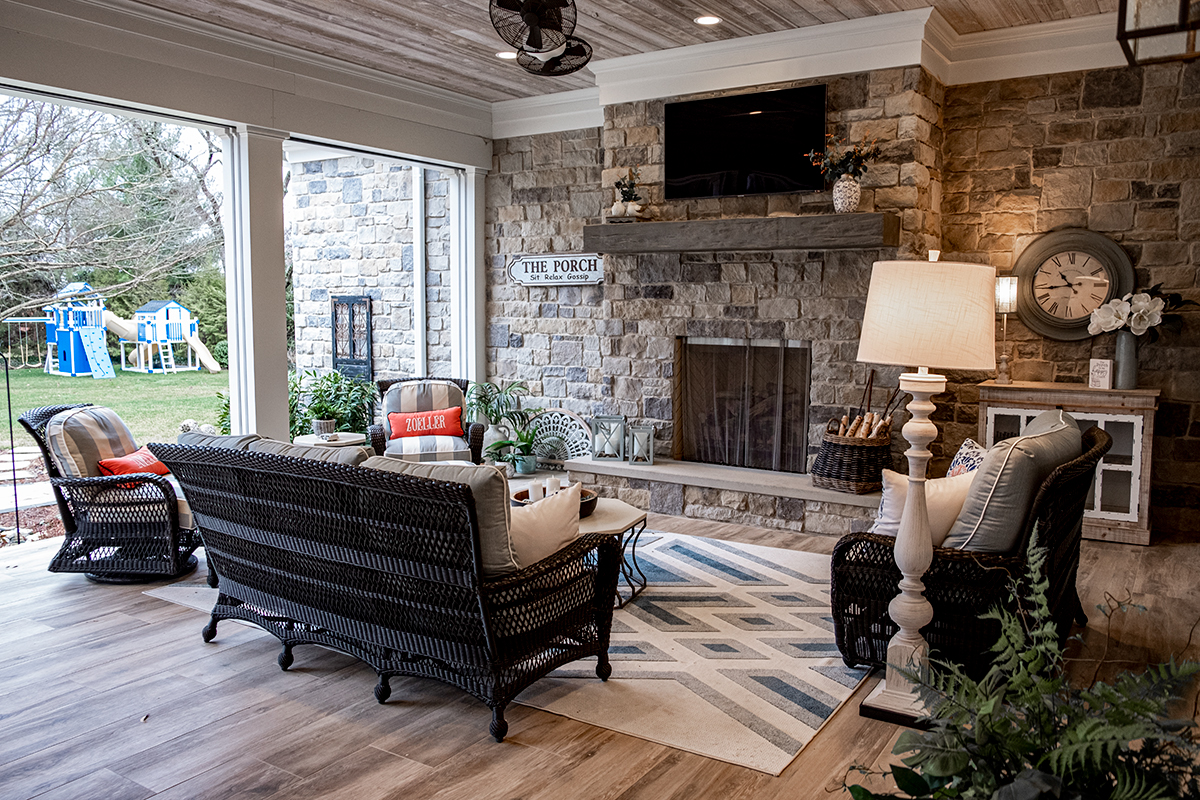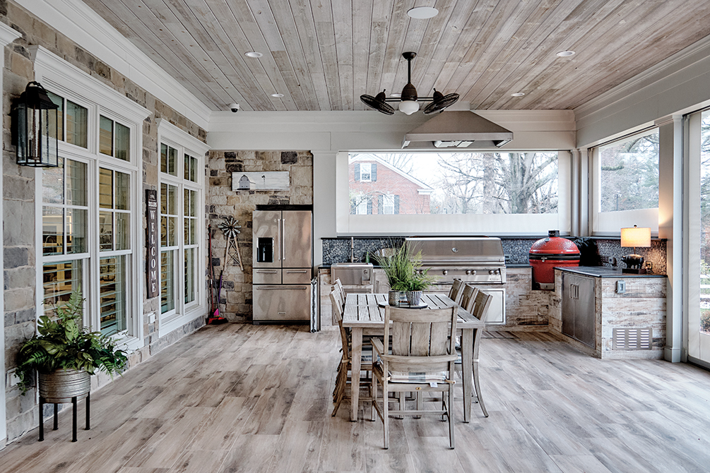 The home was meant to be the “party house,” says the couple, but it was also built to last the Zoellers until old age. The builder made sure the house was as wide as possible, and each door is at least 42-inches wide to be wheelchair accessible. A large porch, fire pit alongside natural stone landscaping, and an outdoor kitchen create a perfect entertainment space. “The functionality is superb … beyond the standard,” Juliette says.
