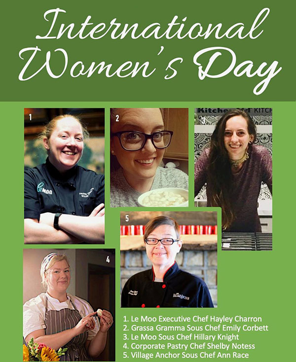 To celebrate International Women’s Day on Sunday, reserve a table at Grassa Gramma from 5-9 pm for an exclusive dinner event to honor five female chefs. The evening will feature a la carte selections starting at $18 and a prix fixe menu for $65, each procured and crafted by the women chefs of Belle Noble, the parent company of The Village Anchor, Le Moo, and Grassa Gramma. Ten percent of proceeds will go to Gilda’s Club Kentuckiana.