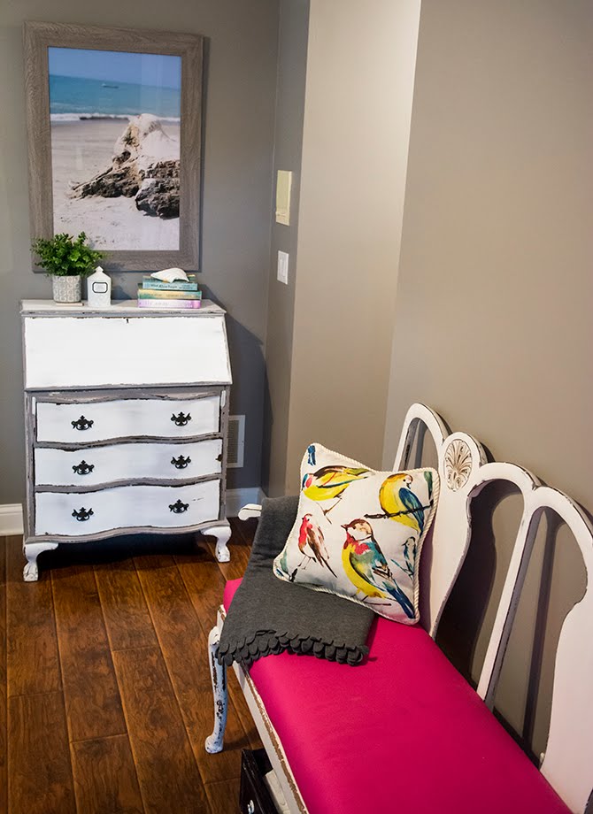 During those adventures in property management, Jenn learned the art of painting furniture. This self-proclaimed junk gypsy found that not only was her detail-oriented personality good at it, there was a market for refinishing furniture. “There’s always a way to rework inherited furniture: changing out chairs, painting the table, or adding fabric,” Jenn says. Jenn especially enjoys the transformative nature of her work. “Seeing something that people have put out for trash and turning it into something beautiful — it’s rewarding to me,” she says. Clients have brought pieces to her that are sentimental to them, but just don’t jive in their space. “I can make it work in their home today: living beautifully is surrounding yourself with pieces of furniture that tell a story.”