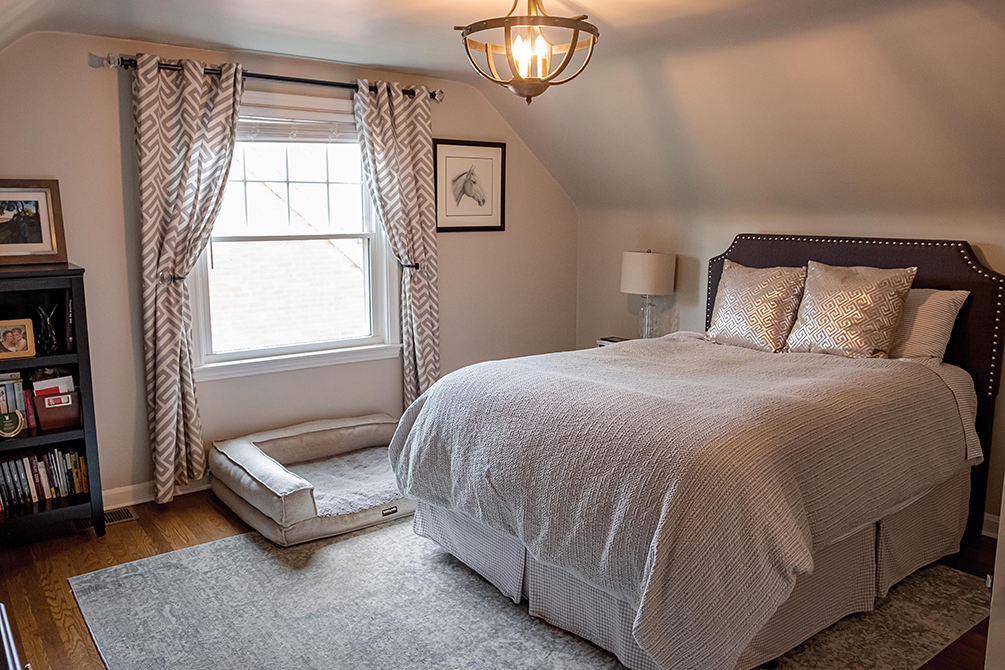 The duo created two additions: a master suite with a large bathroom and walk-in closet in the back, as well as an office and full bathroom in the basement. They added a front door to the upper level of the home, a mudroom entryway to the garage, and even a doggie bedroom underneath the stairs. When completed, the project was a 4-bedroom, 4-and-a-half bathroom home with refinished floors, high quality finishes, new HVAC and water heater systems, and a new driveway. “We made it into a gorgeous family home for a young couple with two kids,” Brenna says.