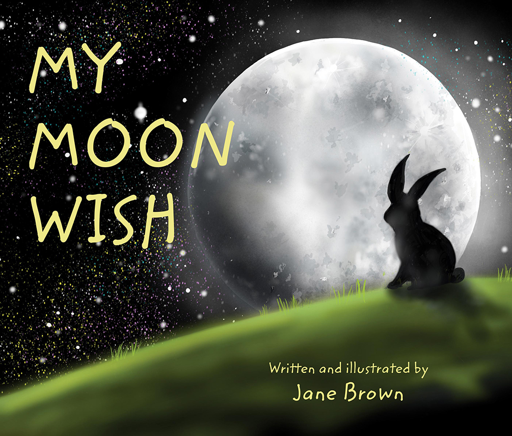 Both author and illustrator, Jane, a long time artist who had primarily worked with colored pencil and ink, used My Moon Wish as a way to expand her artistic technique. In order to attain the more vibrant colors she desired for this book, Jane shares that she taught herself to use Procreate, a digital illustration application on her iPad, for the imagery.