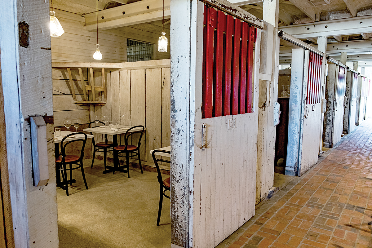 Dining areas are actually in repurposed horse stalls.