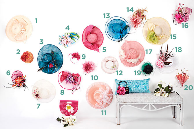 1. Frank Olive Hats by Gabriel Amar, $475, available at Von Maur, Oxmoor Center; 2. Formé Millinery, $550; 3. The Hat Doctor, $250; 4. Sweet Caroline Hats, $149, available at Polkadotted Pineapple Boutique, 526 Main St., Shelbyville; 5. Christine A. Moore Millinery, $710, available at Rodes for Him/Her; 6. Gloriela’s Designs, $129, available at Peacock on Third, 122 N 3rd St., Bardstown; 7. KY Derby Hats, $180, available at Pix Shoes, 201 S Preston; 8. Gloriela’s Designs, $209, available at Peacock on Third, 122 N 3rd St., Bardstown; 9. Jen’s Derby Hats, $49, available at Polkadotted Pineapple Boutique, 536 Main St., Shelbyville; 10. Fascinate Designs, $190; 11. Frank Olive Hats by Gabriel Amar, $400, available at Von Maur, Oxmoor Center; 12. Simply Laura Millinery, $400; 13. Jen’s Derby Hats, $165, available at Polkadotted Pineapple Boutique, 536 Main St., Shelbyville; 14. The Mill by Kenzie, $450; 15. Simply Laura Millinery, $500; 16. Secret Beauty Hats, $285, available at Hampton Inn, 101 E Jefferson St.; 17. Frank Olive Hats by Gabriel Amar, $450, available at Von Maur, Oxmoor Center; 18. Sweet Caroline Hats, $169, available at Polkadotted Pineapple Boutique, 526 Main St., Shelbyville; 19. Designs by Tony, $275; 20. Griffin Derby City Hatters, $228, available at The Mysterious Rack, 558 S 4th St.