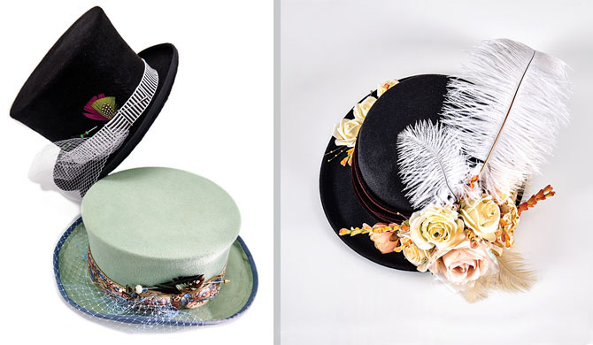 (Left) Griffin Derby City Hatters, $448 (top hat), $418 (bottom hat), available at The Mysterious Rack, 558 S 4th St.