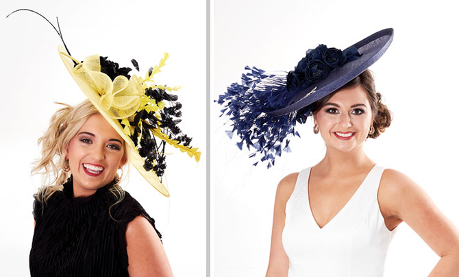 Kentucky Derby Festival Princess Hannah Robb (left) is wearing: Dress, $110, That Cute Little Shop; Earrings, $32, House of K; Hat by Gloriela’s Designs, $189, available at Peacock on Third, 122 N. 3rd St., Bardstown.