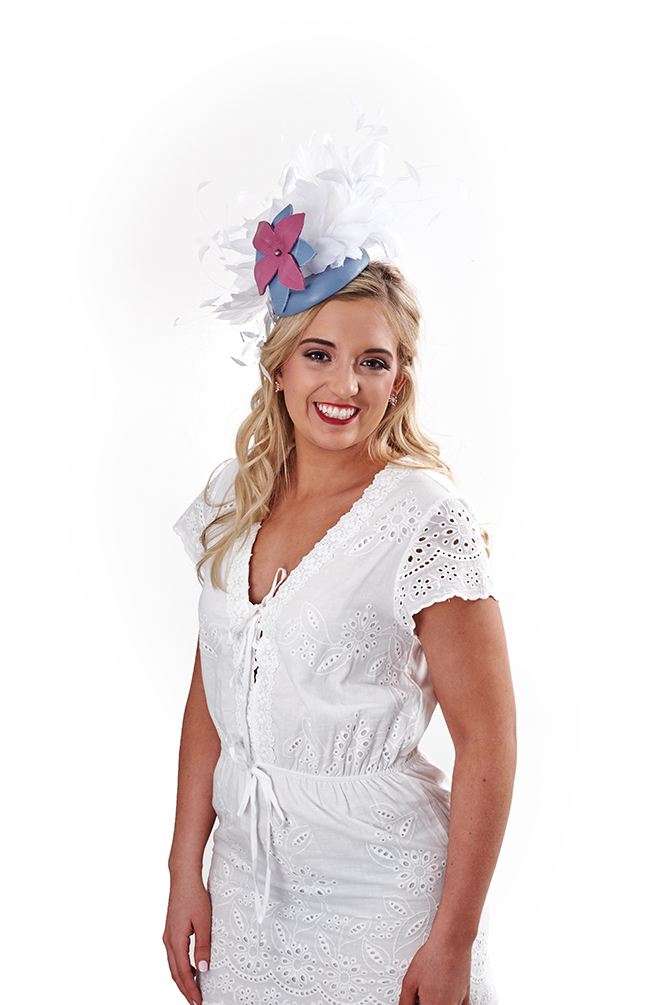 2020 Kentucky Derby Festival Princess Molly Jett is wearing: Dress, $140, That Cute Little Shop; Earrings, $20, House of K; Hat by Sweet Caroline Hats, $189, available at Polkadotted Pineapple Boutique, 526 Main St., Shelbyville.