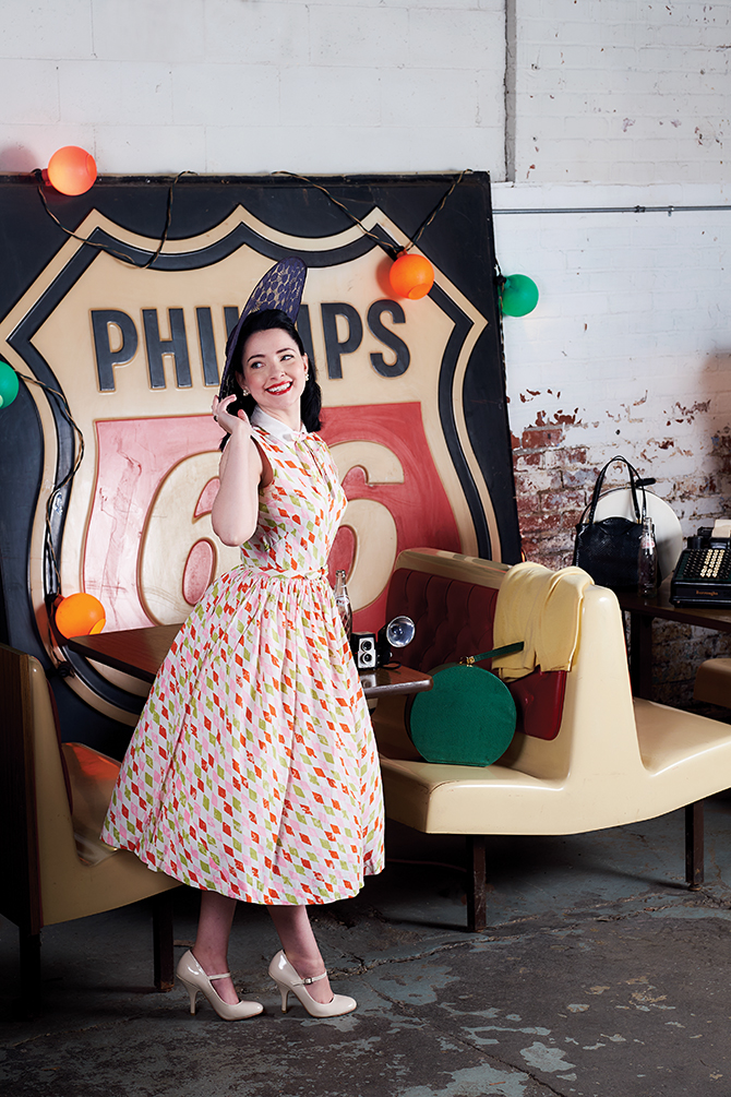 ALESSANDRA IS WEARING: Dress and pearl necklace ensemble, $35, rental only; gloves, $18; shoes, $45. All items available at Nitty Gritty, 502.583.3377. Ring, $15; purse, $30; Hat, $15, Booth #777, all available at Fleur de Flea Vintage Urban Market.