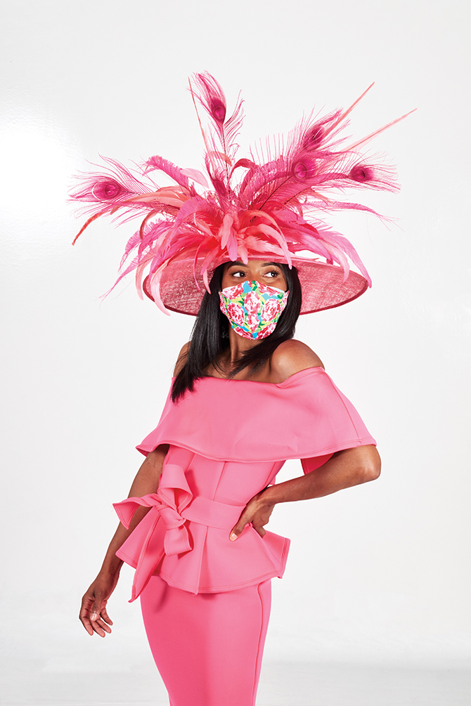 Your Derby mask can make a statement at this year’s historic race on September 5. Local hat designers have extended their fashion flair to create custom masks to complement their brilliant hats.