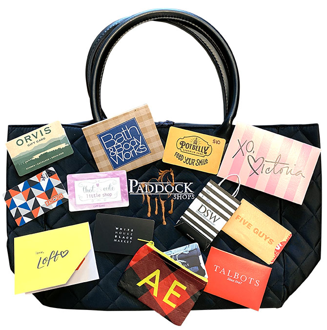 Enter to win a Paddock Shops tote bag filled with a variety of gift cards from Paddock Shops retailers and restaurants!