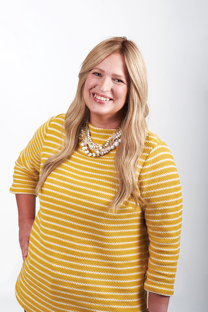 Rickelle is wearing: Blonde human hair wig, $2100, available at The Wig Shoppe. Knit top, $79.50; necklace, $89.50 available at Talbots.