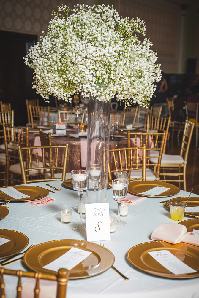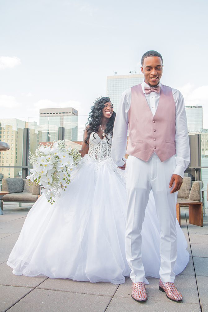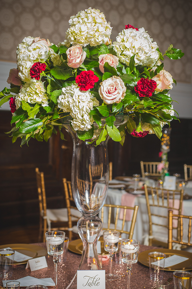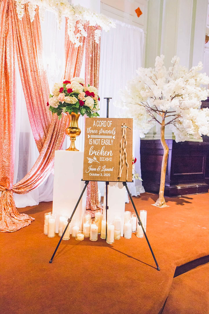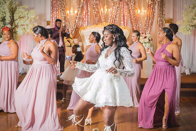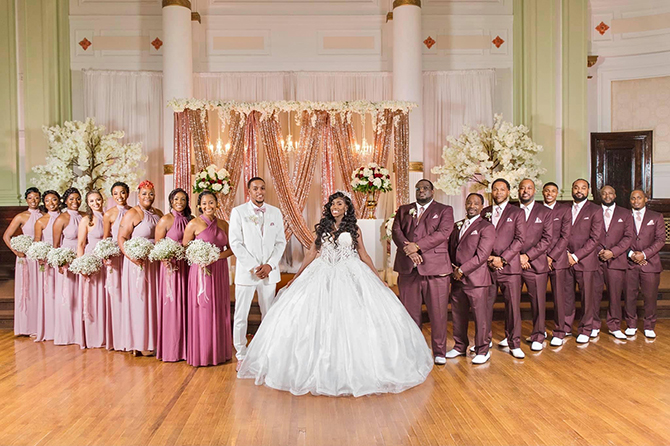 Their formal wedding displayed a color palette of rose gold, dusty gold, burgundy, and ivory accented with floral centerpieces that towered over the tables at 3 feet tall. Beyond the lavish decor were plenty of special moments orchestrated by the bride and groom. Leonard’s vows were a perfect reflection of his love for Jasna and his devotion to God. “To this day, our guests cannot stop talking about his vows,” reflects Jasna. Their first dance as a married couple was to This Is Why I Love You by Major.