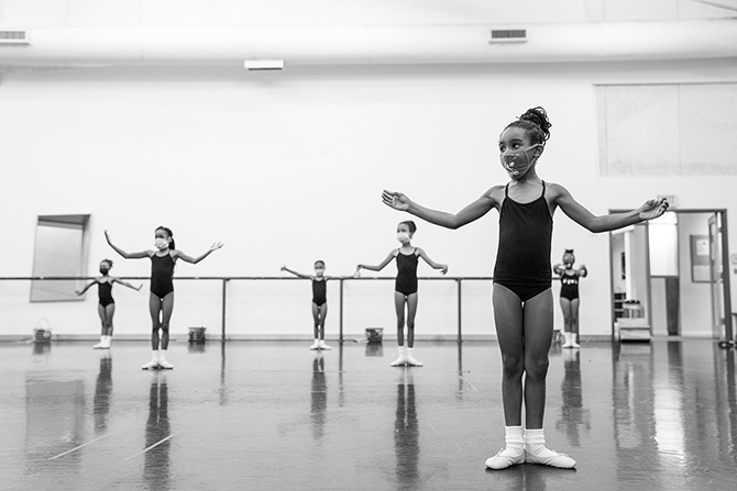 Of course, performances are just one part of what Louisville Ballet does. Stacey Blakeman, director of community engagement, says the Louisville Ballet School moved to virtual classes in the spring but reopened to in-person classes in August with strict safety measures. With so many children doing online district education, “having this outlet for a place to go and something to do that is safe has been really important to a lot of our school families,” Stacey says. Families who don’t feel comfortable with in-person classes are still able to have virtual ones.