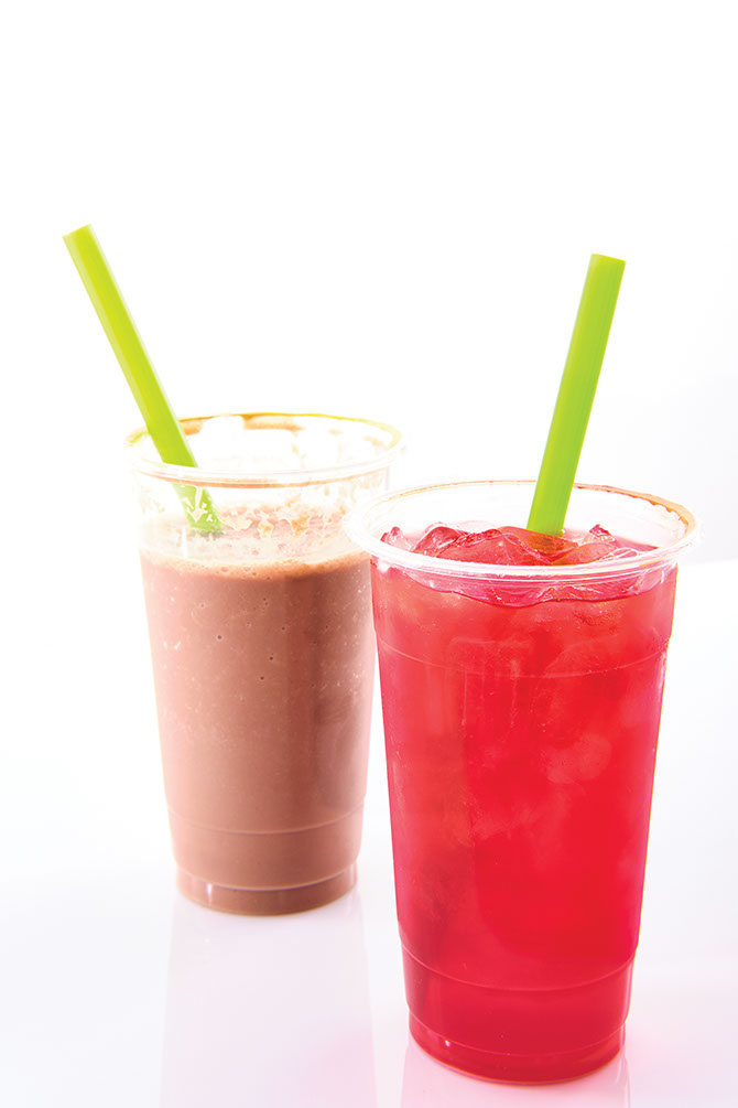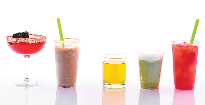 Berry Rosemary Margarita, Reese’s Peanut Butter Cup Meal Smoothie, Turmeric Tea, Matcha Green Superfood Smoothie, and Berry Good Boosted Tea.