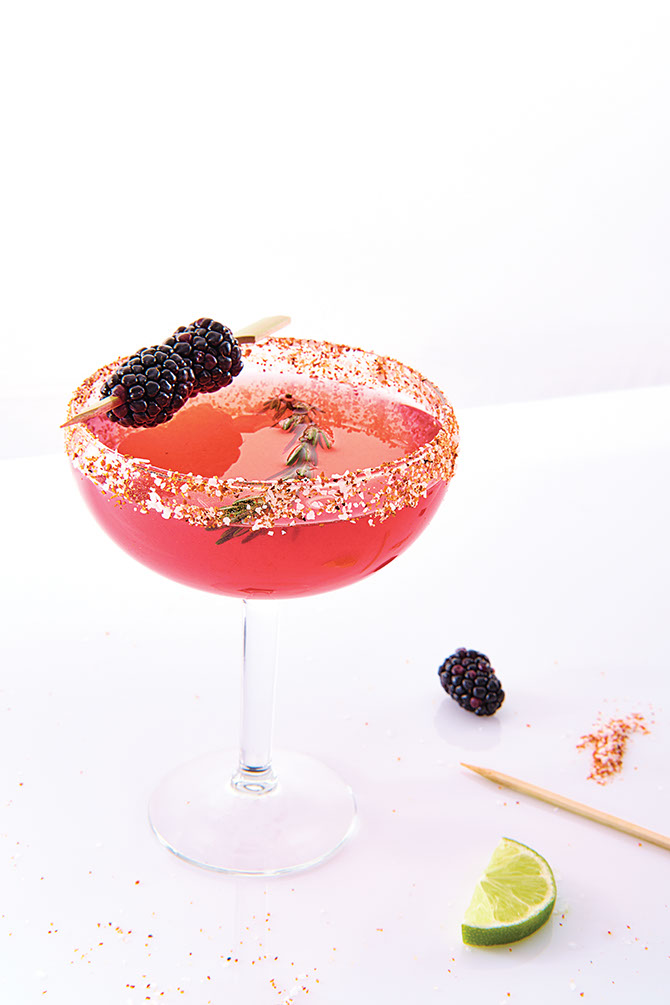 Instructions: Rub the rim of a rocks glass with a lime wedge and dip in the Tajin salt. Muddle blackberries and rosemary sprig in a cocktail shaker. Add Modica, tequila, ice, and shake. Strain into the rocks glass and add ice. Garnish with blackberry and rosemary sprig.