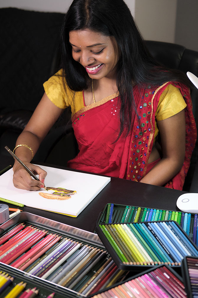 Don’t be fooled. Watching one of Sravya Manohar’s time-lapse drawing videos may give you the overzealous notion that if you pick up a graphic pencil, you may be able to draw just like her. She makes it look so easy from her YouTube channel, but what condenses to a three-minute video, in actuality took her seven to eleven hours.