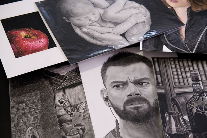 There is nothing that Sravya won’t attempt: portraits of different sizes, pets, still lifes, celebrities, etc. “I try to draw everything and don’t stick to a particular genre. I am inspired by challenging pieces.” Challenging pieces like a shirtless boy drenched in water from a rain bucket or a newborn baby curled in the arch of his parents’ hands. These drawings, so detailed and realistic you feel like you could reach out and touch them, are also used in her YouTube videos to teach others how to draw with precision. “I keep getting inspired. I want to reach as many people as I can.”