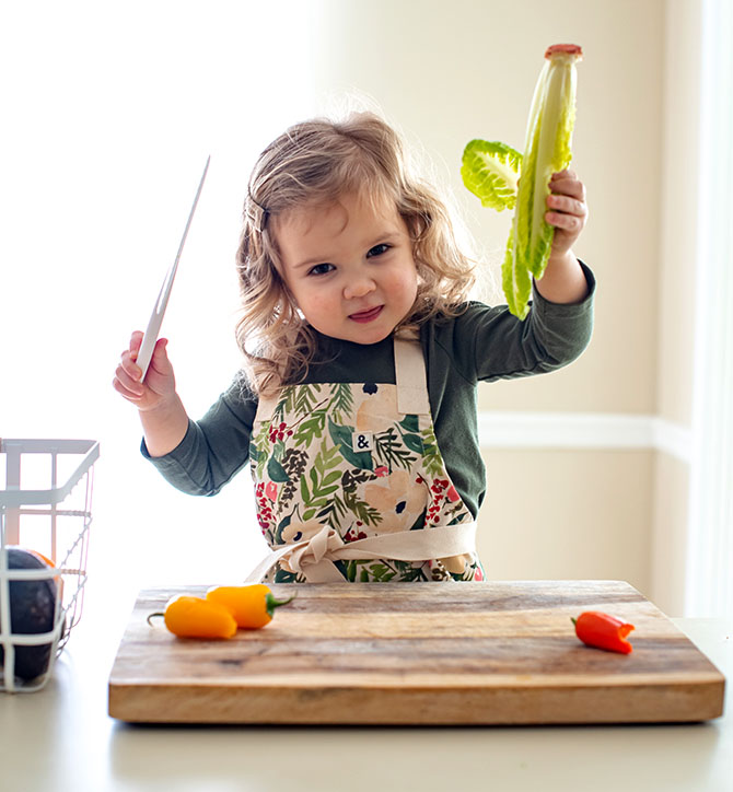 A chair or learning tower and some plastic training knives are all you need to get your kids excited about helping in the kitchen. When Norah helps me make a salad for lunch, she always ends up eating the lettuce or cucumber right from the cutting board without anyone offering it to her. Don’t feel like you have to hide the spinach in their smoothie — ask them to put a handful of it in the blender. Let them scoop the chia seeds and pour in the almond milk. They will be so proud of themselves, they’ll likely eat (or drink) every bit and even encourage you to do the same.