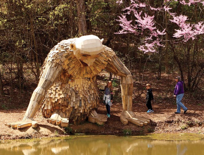 Hiking, Fishing, and Giants…Oh my!…Bernheim Arboretum and Research Forest is located 25 miles south of Louisville, offering over 40 miles of hiking trails, fishing, public art, and the must-see Forest Giants. Carved from recycled wood, the three Forest Giants tower over the landscape, thrilling visitors with their detail and size.