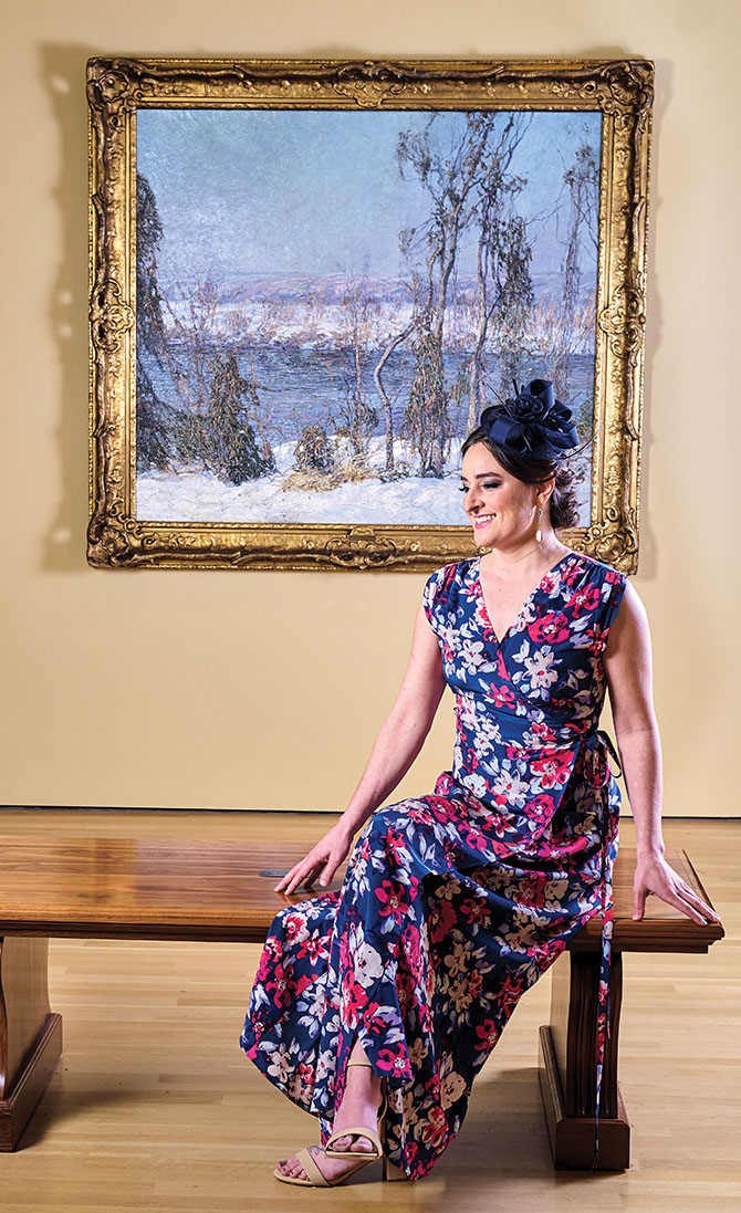 Nadia is wearing: Dress, $48, Earrings, $14, Fascinator, $22, all available at Stella’s Resale Boutique, 502.649.5204.