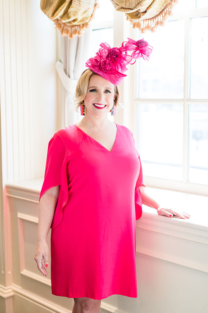 Dodie is wearing: Hat, $125, from Hats Off By Helen; Dress, $215, Earrings, $49, both from Monkee’s of Louisville, 502.897.1497.