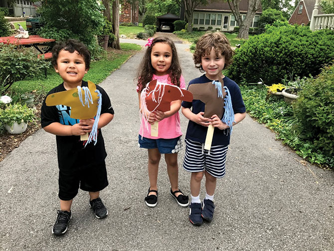 LaVergne of Jeffersonville, Indiana, says she created a horse pattern out of lightweight cardstock, and the children used it to twice trace the side profile of a horse on to the paper color of their choice.