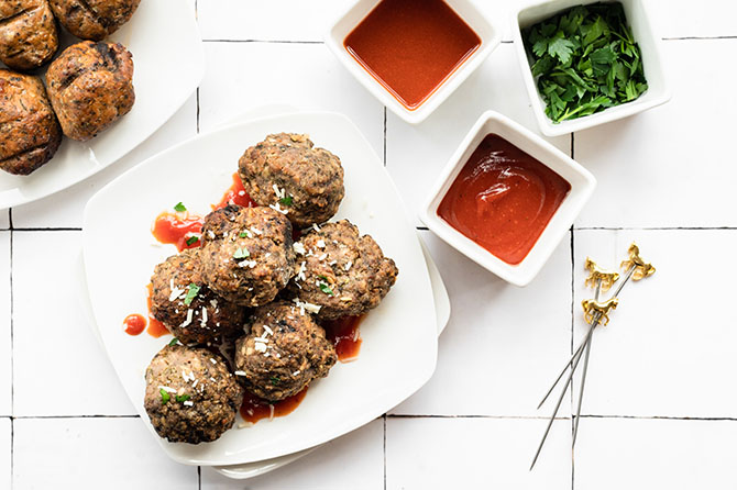 Bourbon-Sauced Grilled Meatballs by Chef Paula Hunter, co-owner of the The Black Italian