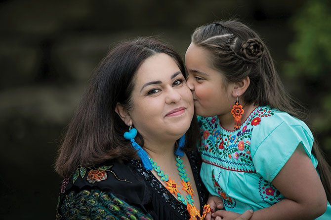 Mothering traditions in your culture: The most important ones are sacrifice and abnegation. I grew up on the border, so my experience wasn’t the same as that of someone who lived deeper in Mexico. My mother wasn’t religious, and she emphasized education and personal growth. My father was an intellectual and an artist who read to us from National Geographic every night. We couldn’t afford to travel, but he exposed us to the world in that way. From them, I have learned to work hard and find my own path, and I encourage my daughter Itzzy to do the same.