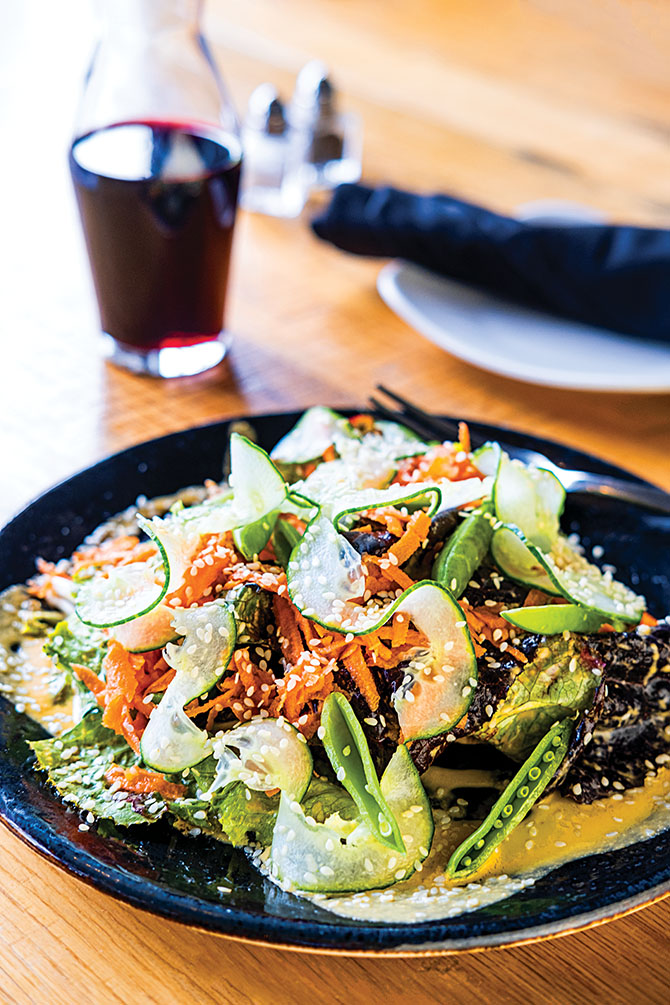 LouVino’s ginger salad (above) will make your taste buds sing with its pickled carrots, sliced cucumber, roasted tomatoes and toasted sesame seeds topped with ginger dressing. You also have the option of adding chicken or salmon.