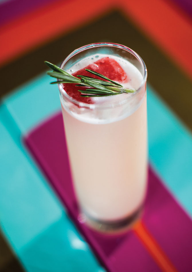 Never Say Die‘s Matty Brown and co-owner Michael Railey use Calpis – a Japanese soft drink concentrate – to make this bright, citrusy, summery mocktail. They add in mineral water and infuse it with rosemary and strawberry, but the strawberry coconut ice cube adds an element of surprise in the Strawberry Lemon Calpis. “The ice cube is half strawberry and half coconut. We use a strawberry reduction from fresh strawberry scraps and coconut water…you freeze them together. It will transform your drink into another flavor while you drink it,” Matty says.