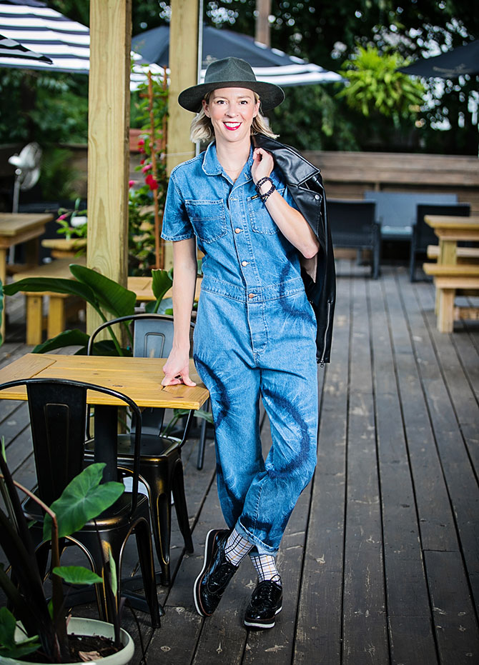 Jessica Mattingly’s fashion extras: French Connection moto jacket, $145, at Mamili.