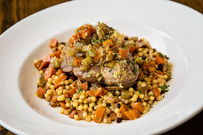 Osso buco slowly cooked with carrots, celery, onions, and a little tomato paste. ROC also offers traditional autumn flavors with a pumpkin ravioli with walnut sauce and pumpkin cheesecake.